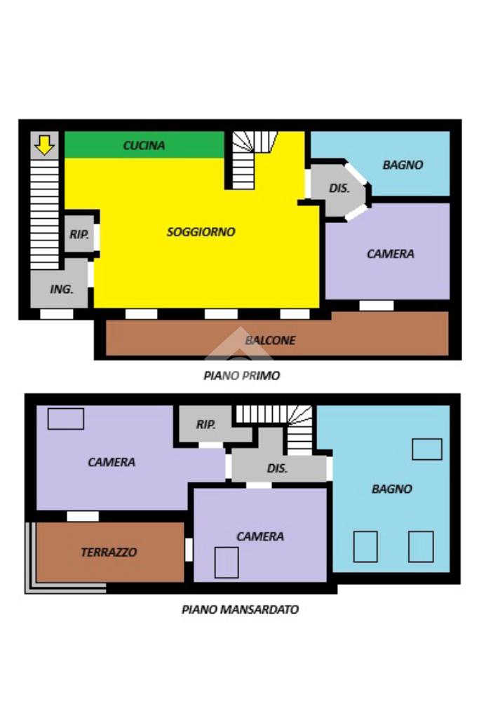 La casa si colloca al piano ultimo con sviluppo sul livello superiore mansardato e beneficia di una luminosa doppia esposizione a Sud-Ovest. L’accesso è indipendente da scala e pianerottolo privati.