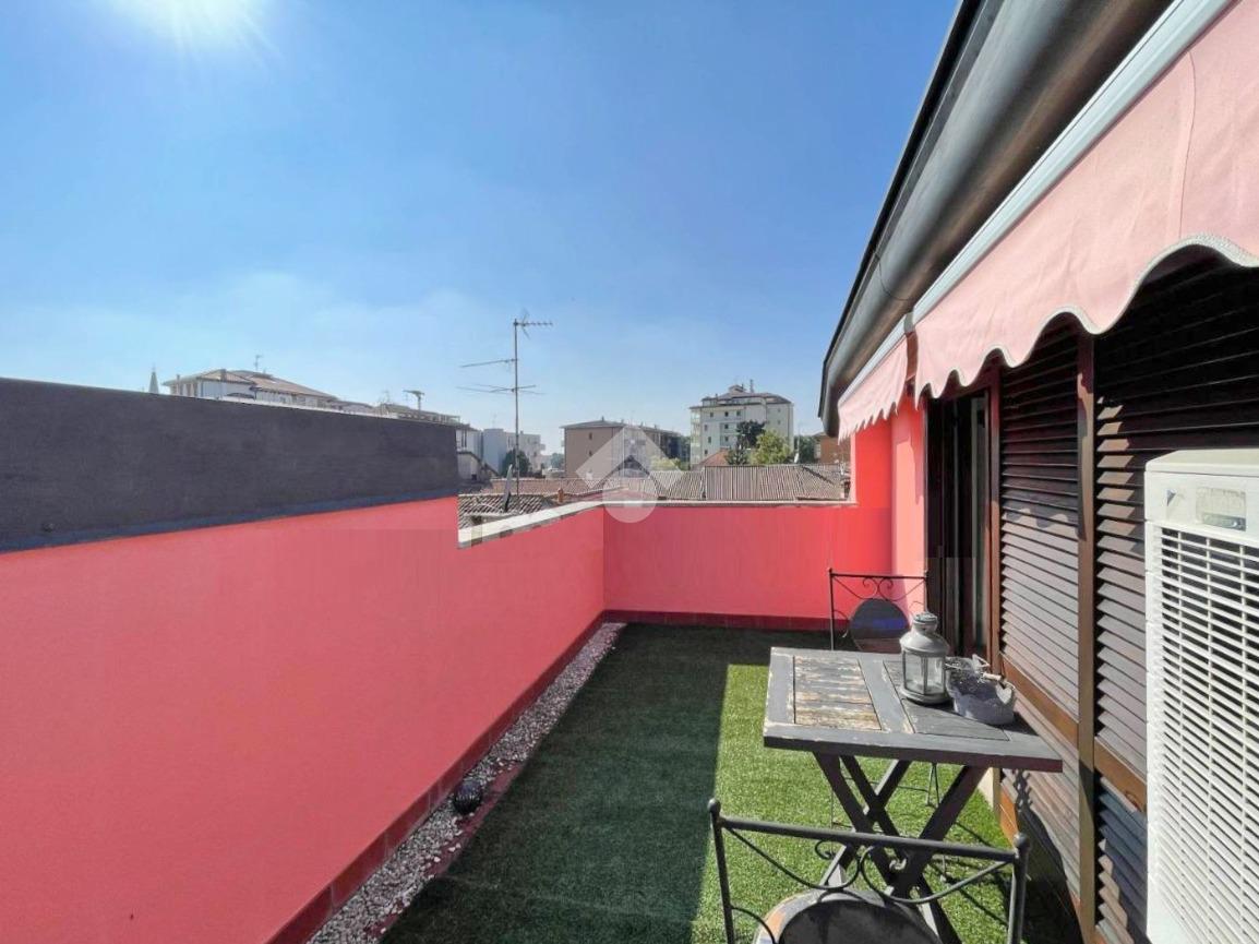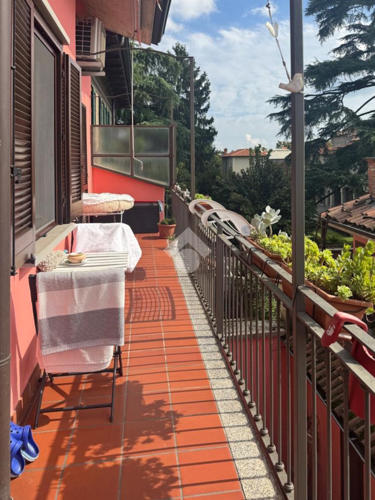 Il vero fiore all’occhiello però è rappresentato dal terrazzo condiviso dalle due camere da letto. Un vero e proprio salotto a cielo aperto, che regala un’impagabile vista sulla storica Villa Gabbioneta.