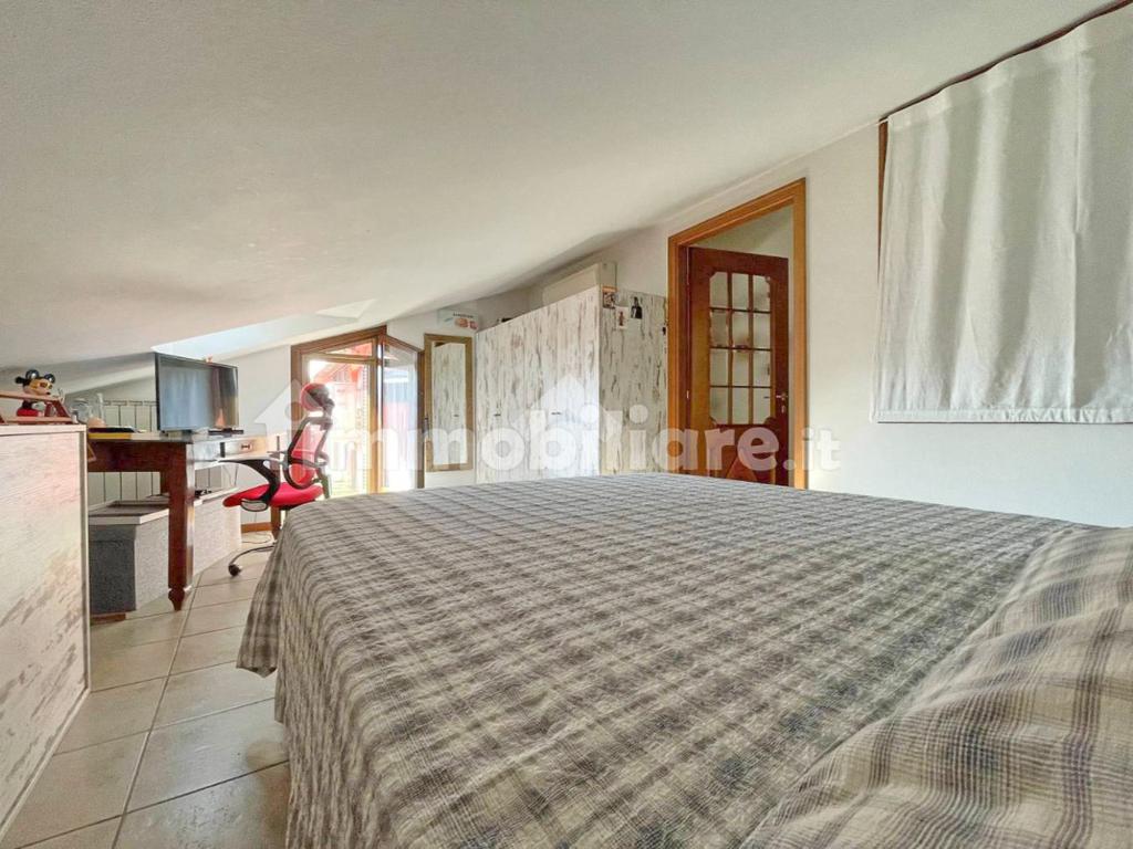 Procedendo per la scala a vista del soggiorno si raggiunge il livello superiore, mansardato, dove trova spazio la zona notte, composta da due camere da letto. Quella matrimoniale con cabina armadio predisposta anche per essere trasformata in un interessante bagno di servizio, più compatto rispetto a quello principale, di ben 28 mq e dotato di vasca, ideale per momenti di assoluto relax.