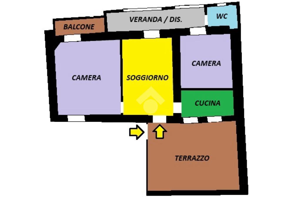 La configurazione degli ambienti è particolare, come per la maggior parte delle case di corte ed offre una godibile zona giorno con cucinotto separato che si contrappone ad un reparto notte con due camere da letto (matrimoniale con secondo balcone e singola), intervallate dal bagno con vasca e da un particolarissimo disimpegno verandato.