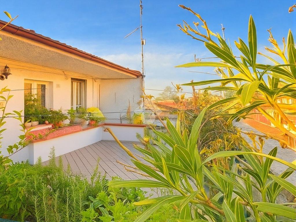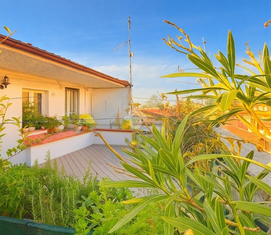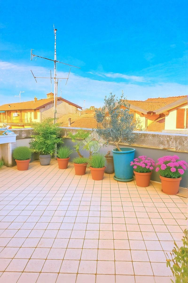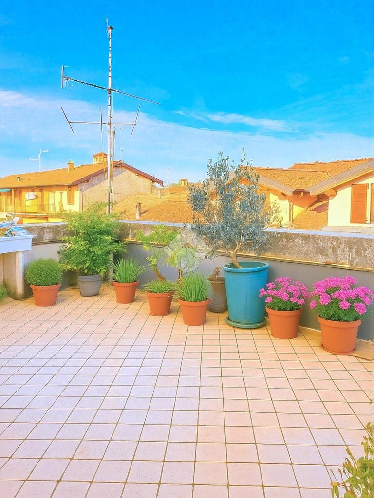 L’accesso alla casa avviene da passando dalla scala esterna comune e subito dopo dal bellissimo terrazzo privato di 27 mq, vero plus dell’appartamento ed elemento essenziale per godersi momenti di relax e compagnia durante le stagioni più belle dell’anno.