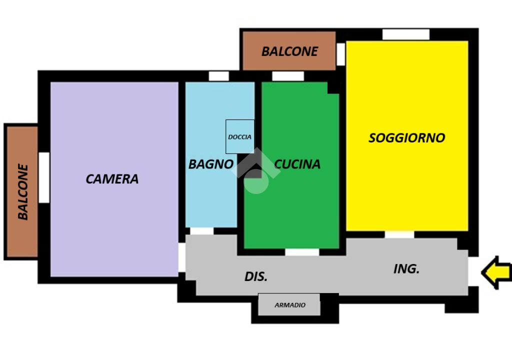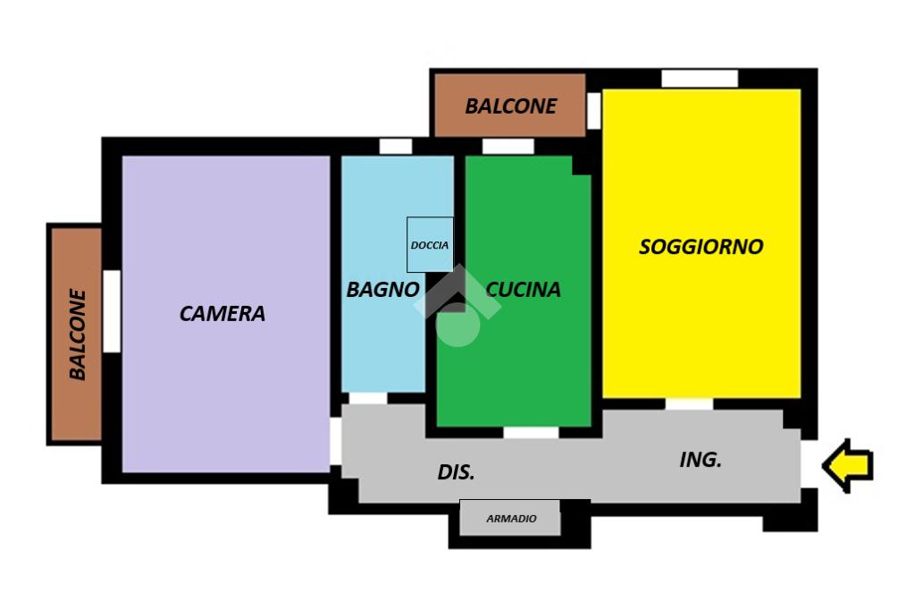 La configurazione degli ambienti interni è in pieno stile degli anni di costruzione (1962). Locali regolari e facilmente arredabili collegati da un lungo ma capiente vano ingresso/disimpegno con porta blindata. La zona living si divide tra un luminoso soggiorno e la cucina abitabile, mentre il reparto notte si caratterizza per una camera da letto doppia e il bagno munito di doccia.