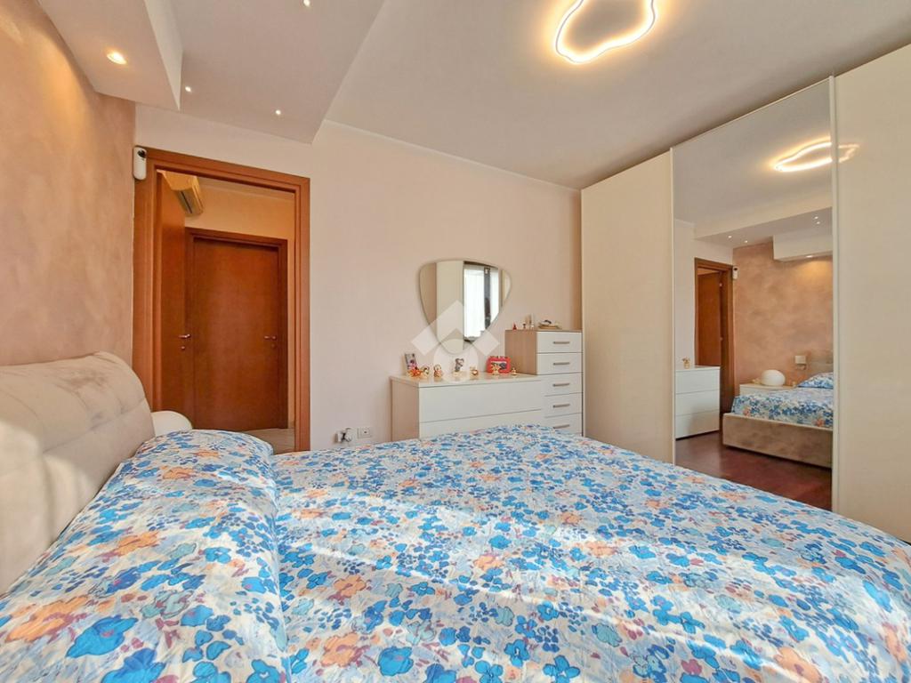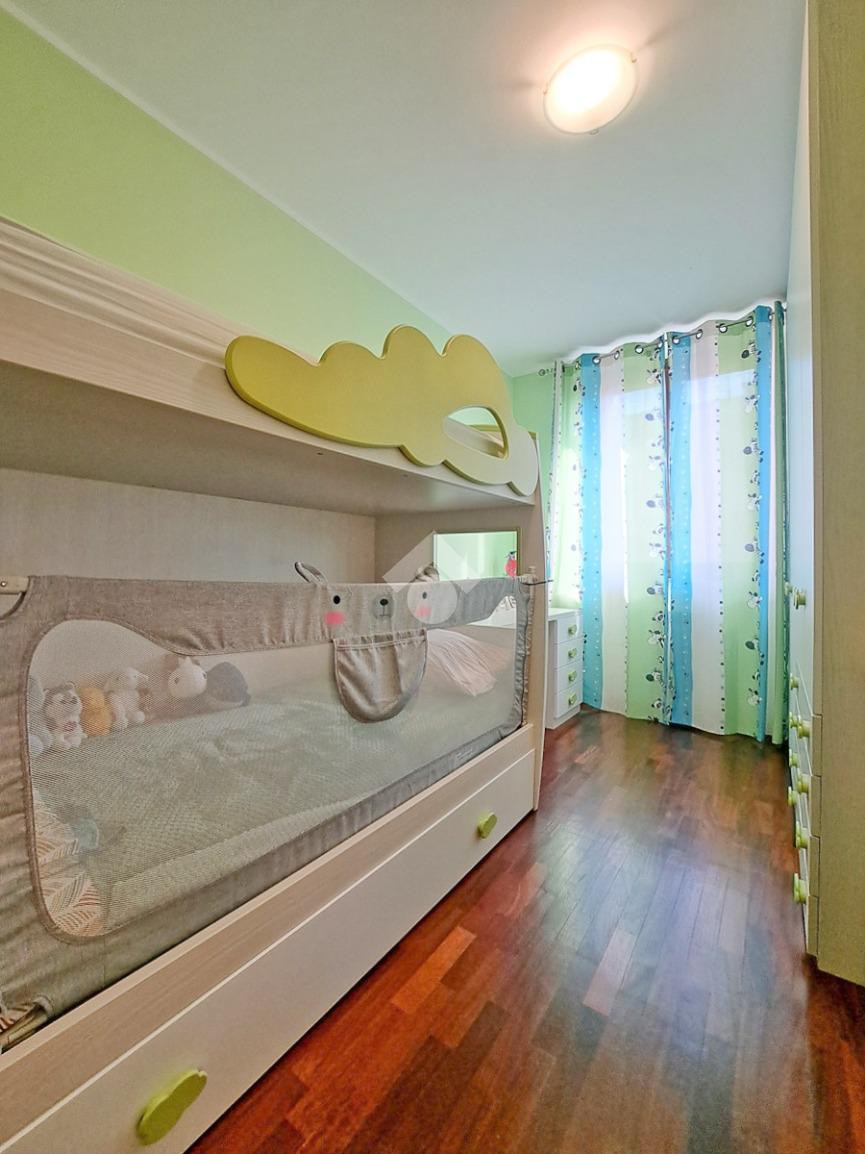 L’appartamento si colloca al primo piano e gode di una doppia esposizione angolare Sud-Est che anche grazie al terrazzino della zona giorno dona ottima luce e ricircolo d’aria ad ogni ambiente. L’ingresso da porta blindata con serratura codificata europea accoglie nel grande soggiorno di ben 27 mq abbellito da un elegante soffitto a effetto “onda” e i suoi faretti. Insieme alla cucina abitabile va a completare il reparto living della casa. Dal disimpegno, passando per le eleganti porte a scomparsa in vetro è possibile invece raggiungere la zona notte che mette a disposizione una bella camera matrimoniale, dove ritroviamo i faretti a soffitto, e la cameretta singola intervallate da un grande bagno completo di box doccia. Il secondo bagno con meraviglioso vetrocemento, presente all’ingresso rappresenta un ulteriore valore aggiunto e si rende perfetto come lavanderia o come servizio dedicato agli ospiti.