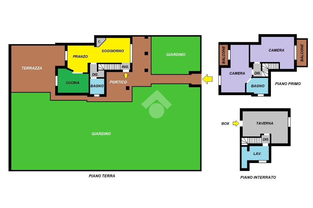 L’ultimo piano della casa, quello interrato, raggiungibile sempre dalla scala interna, si divide tra una piacevole taverna adatta agli usi più disparati, il comodissimo locale lavanderia e il box doppio in larghezza già pavimentato e accessibile direttamente dalla casa.