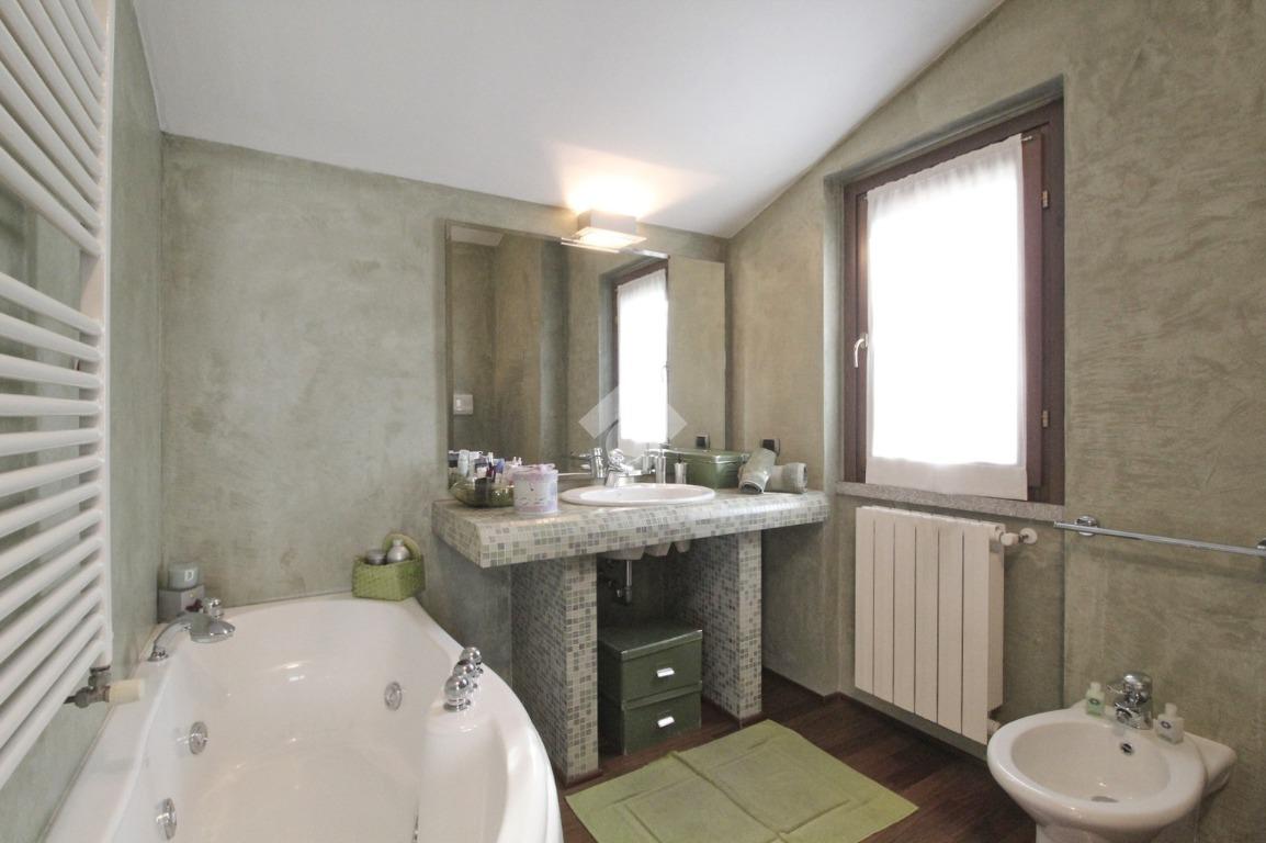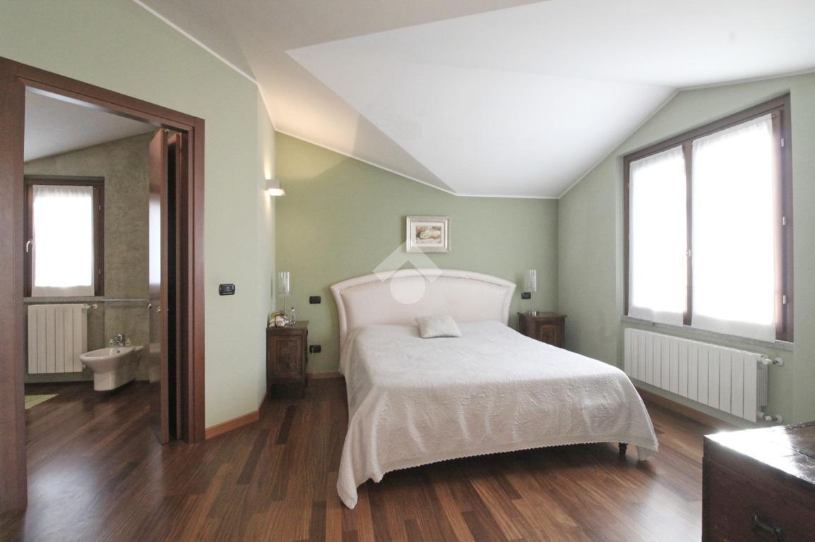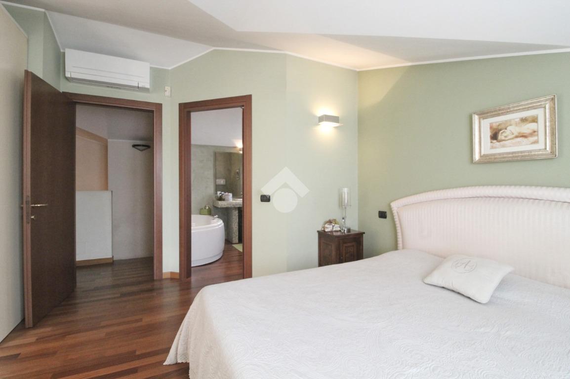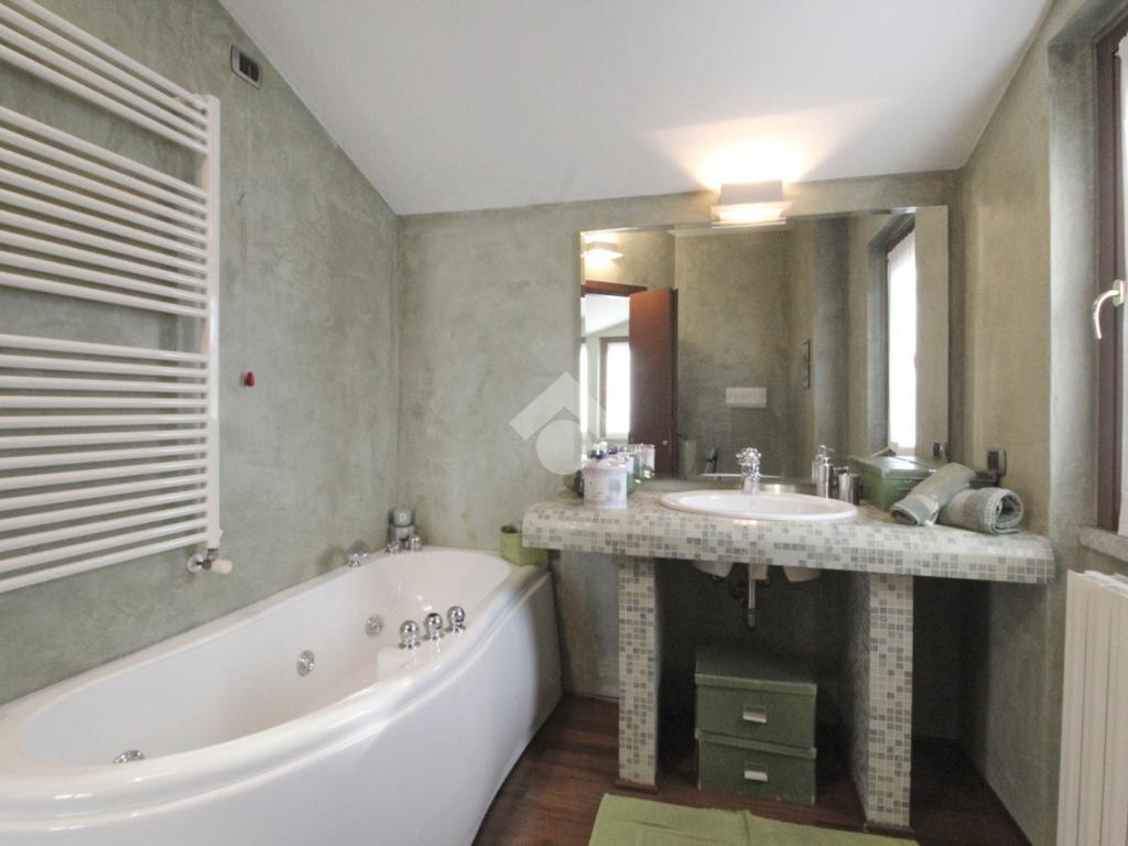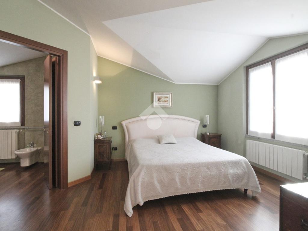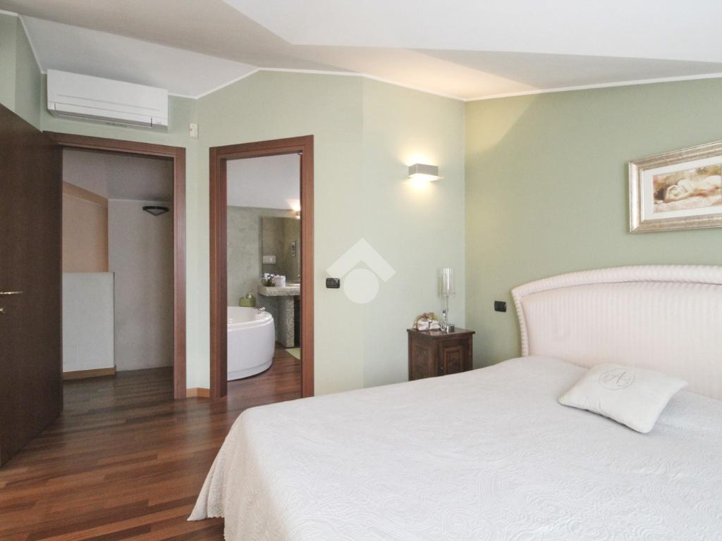 Il piano superiore, accessibile da sinuosa ed elegante scala in muratura con gradinata in parquet, regala una grande zona notte mansardata ma perfettamente illuminata grazie alla presenza di finestre a luce diretta e di due terrazzini. La camera da letto matrimoniale vanta la presenza del bagno padronale con vasca idromassaggio e nel quale ritroviamo la resina e i termo-arredi. La seconda camera offre una superficie tale da poter ospitare due ragazzi.