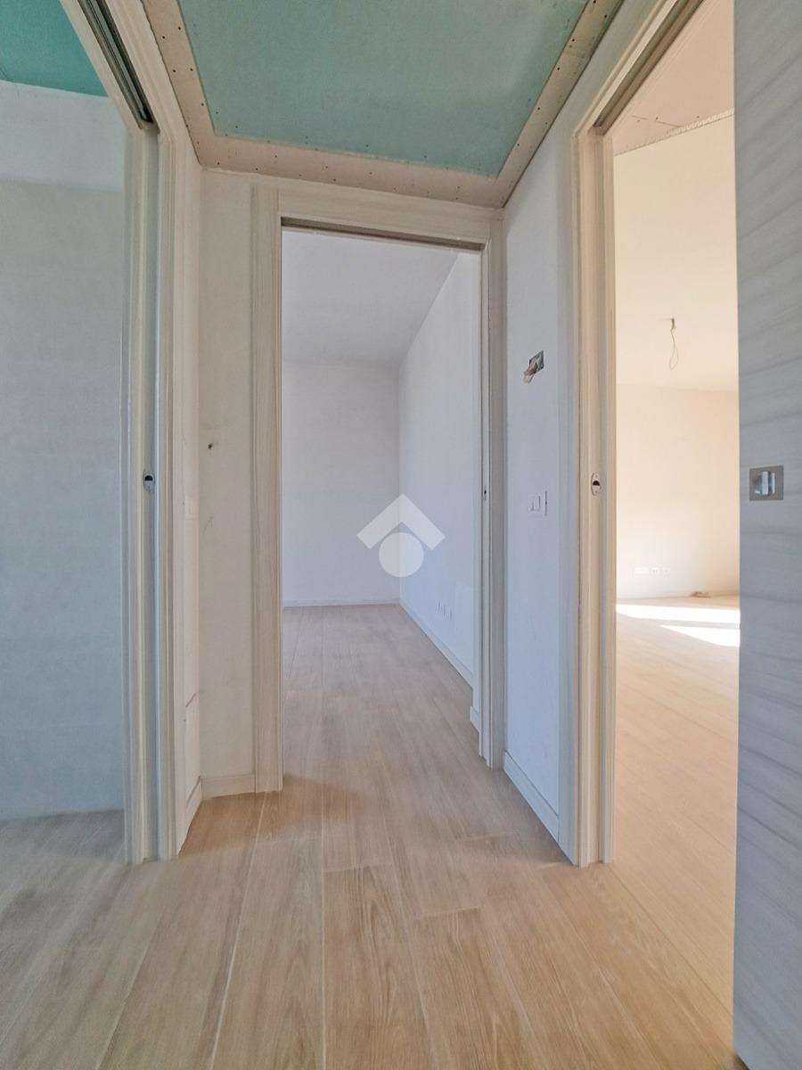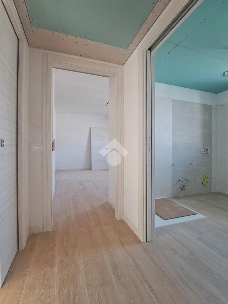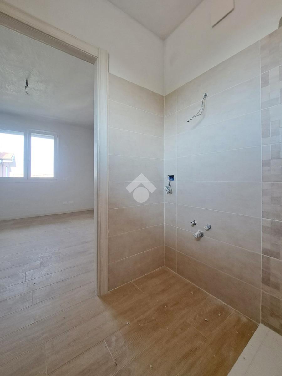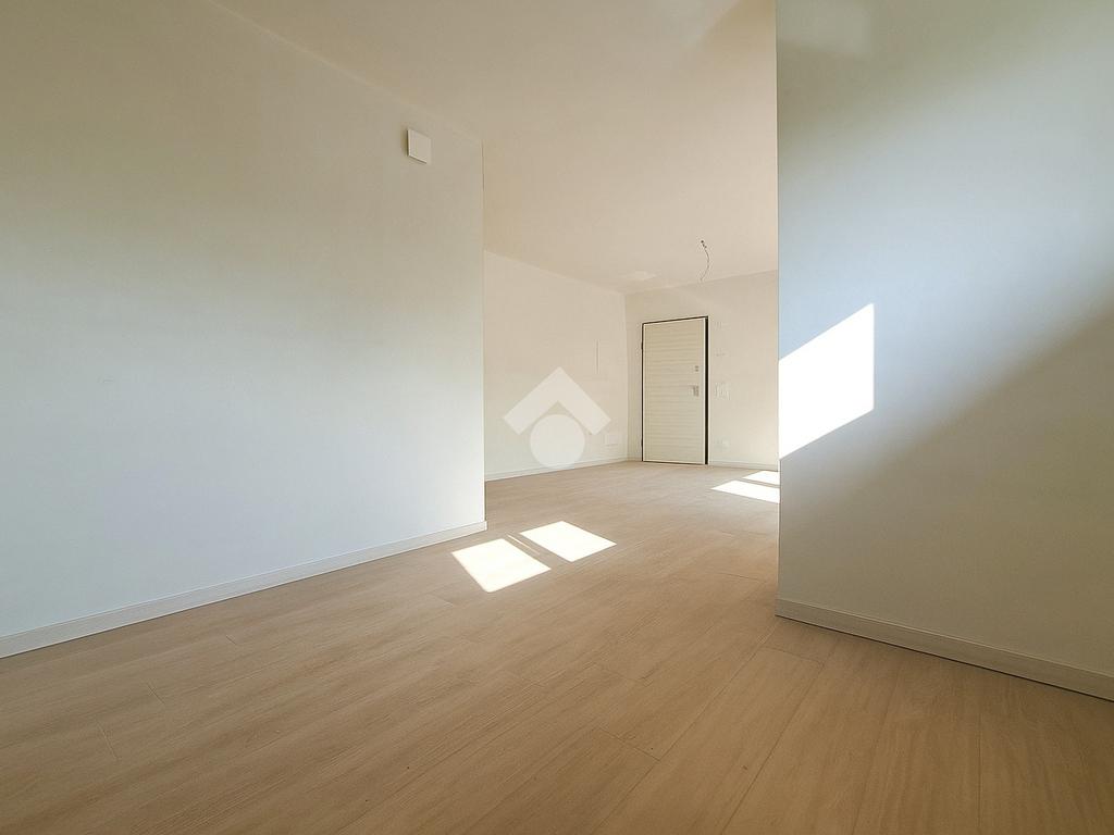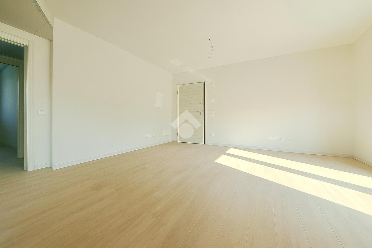 Gli interni sono molto luminosi grazie alla loro doppia esposizione e ai soddisfacenti sfoghi esterni. L'appartamento è rifinito con un moderno gres effetto parquet di colore chiaro e in linea con i toni delle porte interne. La stessa cosa vale per i due bagni. Potrete inoltre contare sulla presenza di eleganti sanitari sospesi e moderne placchette elettriche VIMAR.