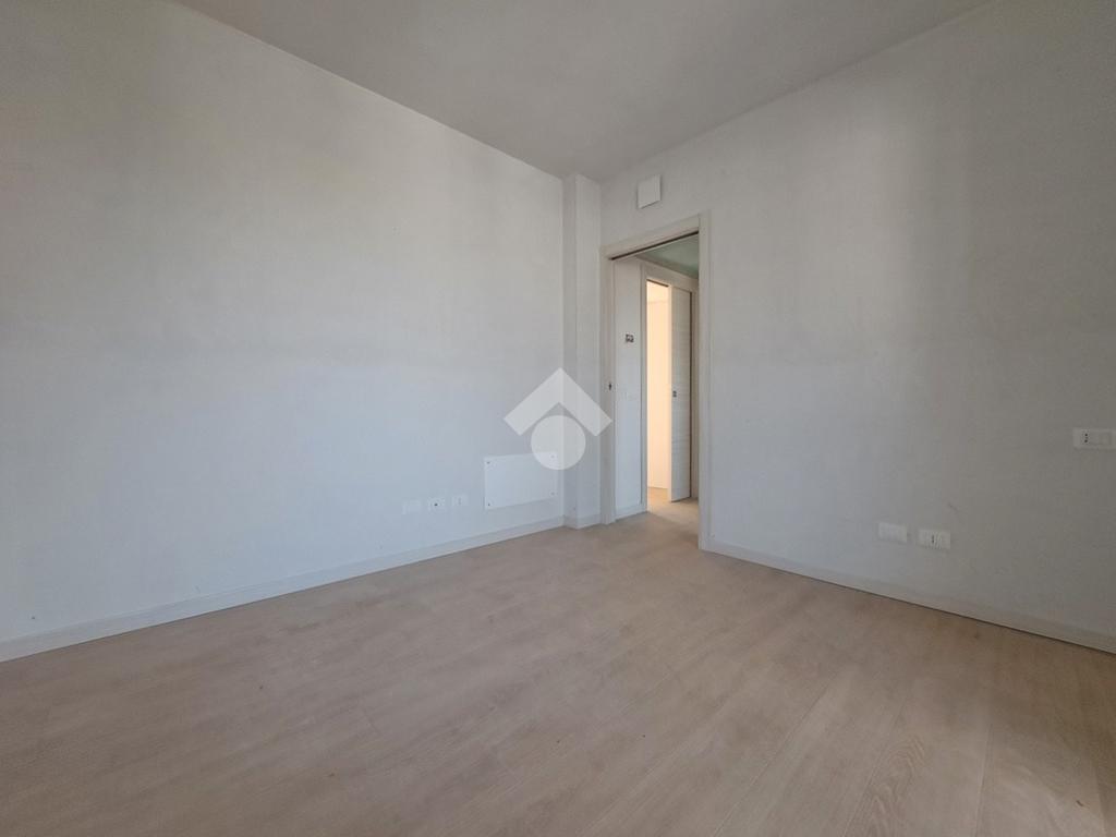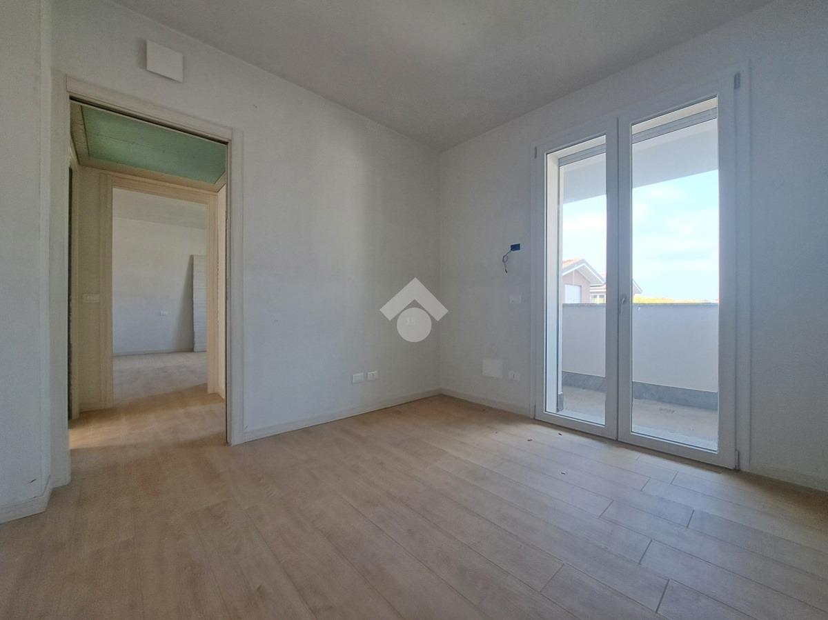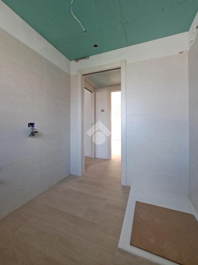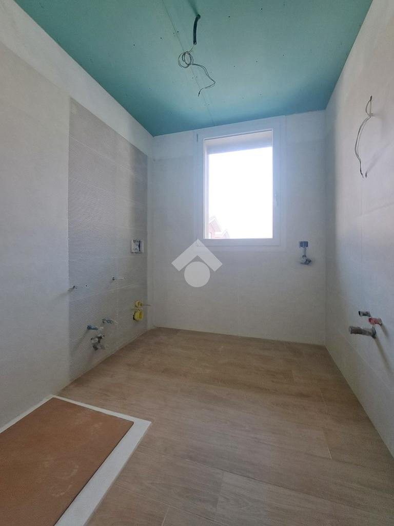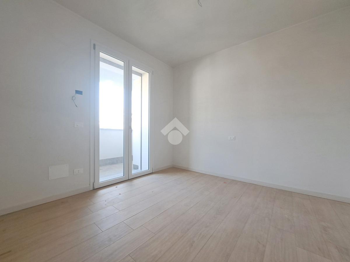 Gli interni sono molto luminosi grazie alla loro doppia esposizione e ai soddisfacenti sfoghi esterni. L'appartamento è rifinito con un moderno gres effetto parquet di colore chiaro e in linea con i toni delle porte interne. La stessa cosa vale per i due bagni. Potrete inoltre contare sulla presenza di eleganti sanitari sospesi e moderne placchette elettriche VIMAR.